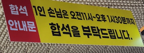 오전 11시~오후 1시 30분 사이엔 1인 손님은 합석 가능하다고 적혀 있었다.