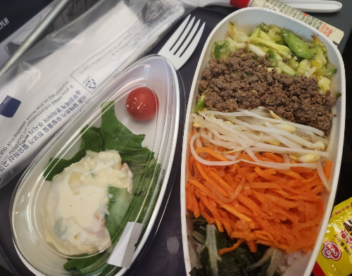 보통 풀서비스 항공사에서는 본식 + 샐러드 + 빵 + 디저트 구성인데,