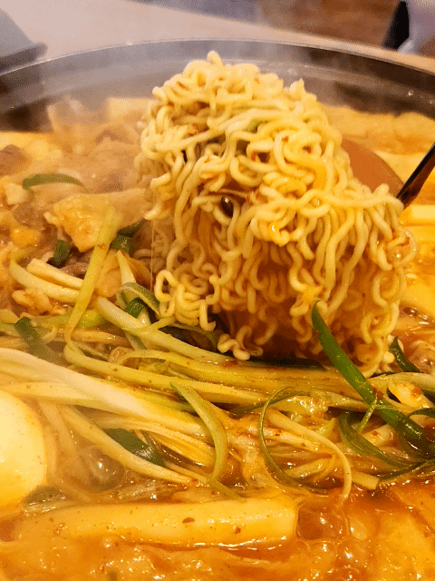 자글자글 끓기 시작하니까, 라면이 익기 전에 면 먼저 건져먹는 게 국룰.