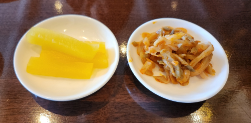 기본 찬으로 짜사이와 단무지가 나왔는데,