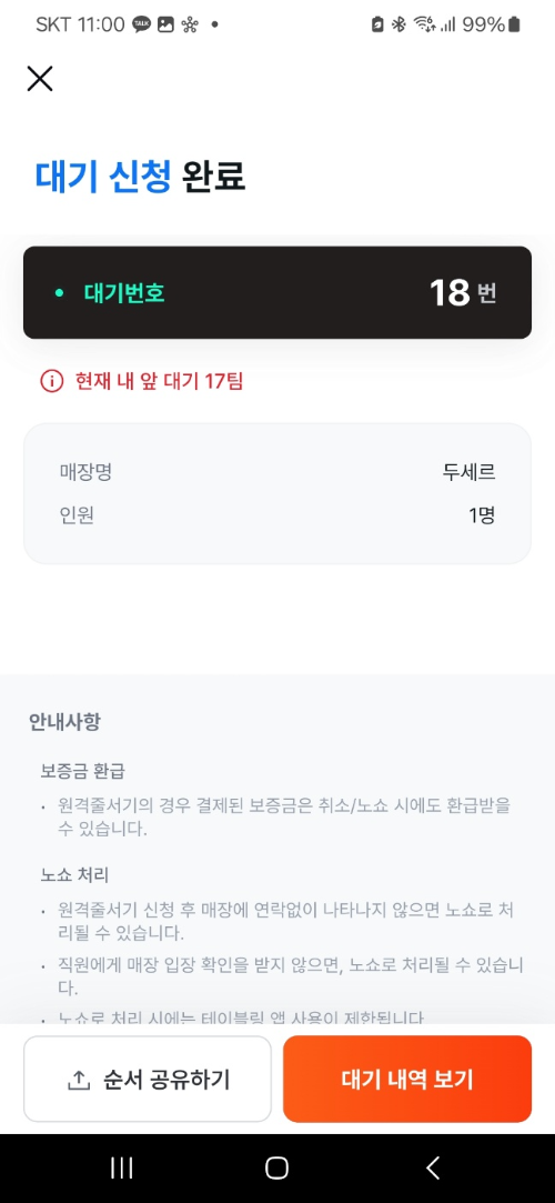 웨이팅 18번 일때, 12시 20분쯤엔 입장함.