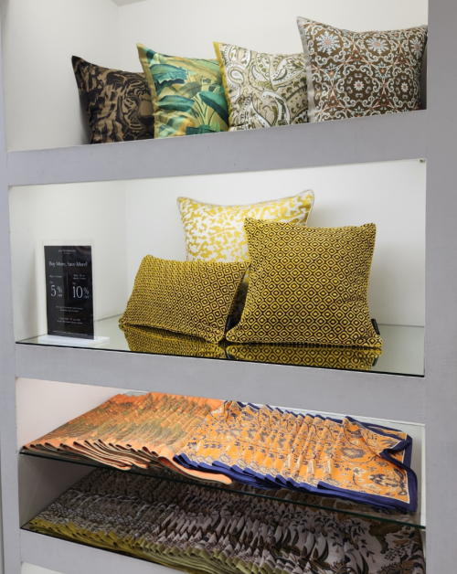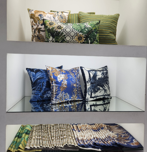 화려한 쿠션 커버들이 눈에 들어왔다.