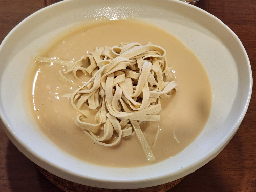 칼로리를 생각해 두부면에 알룰로오스랑 소금을 넣어 먹었는데, 정말 맛있었다.