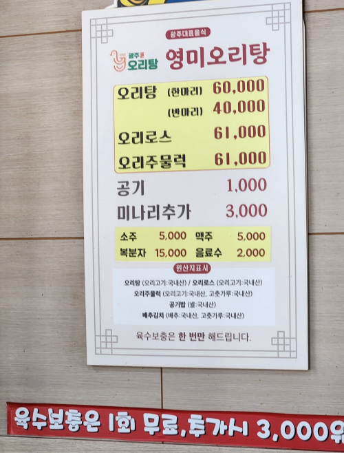 광주에서 오리탕 하면 제일 먼저 나오는 곳, 영미오리탕.