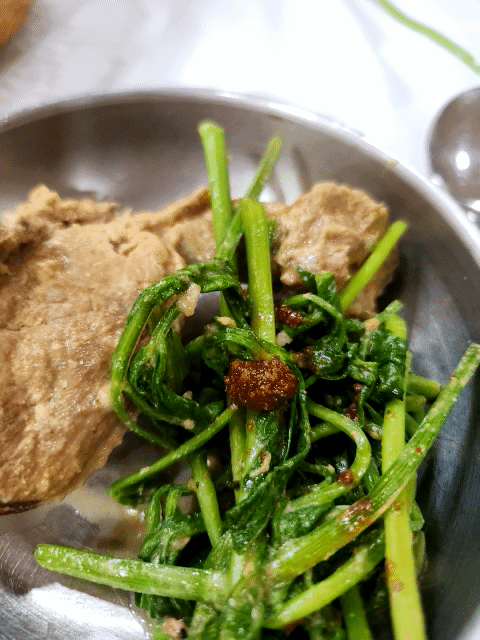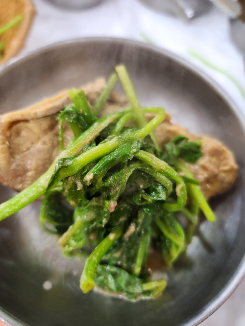 미나리 시즌이 아니라 그런지 줄기가 살짝 억셌는데, 그래도 맛있다.