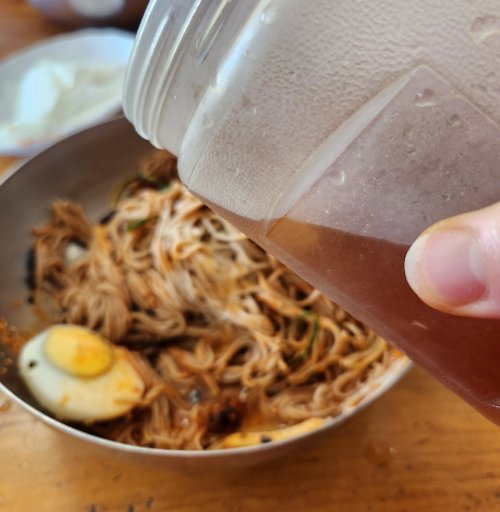 비빔은 따로 주시는 얼음 육수를 기호에 맞게 따라 먹으면 되는데,