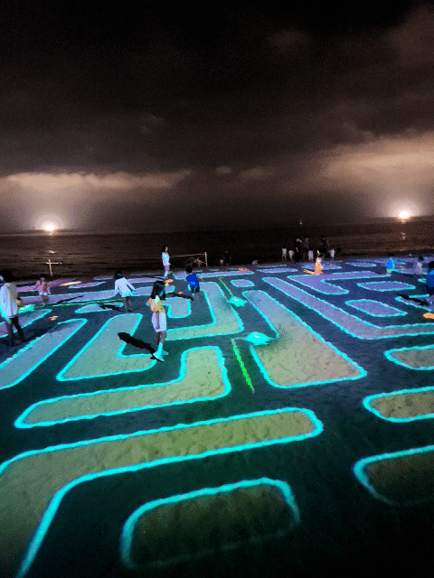 모래사장을 캔버스로 활용한 미디어 아트