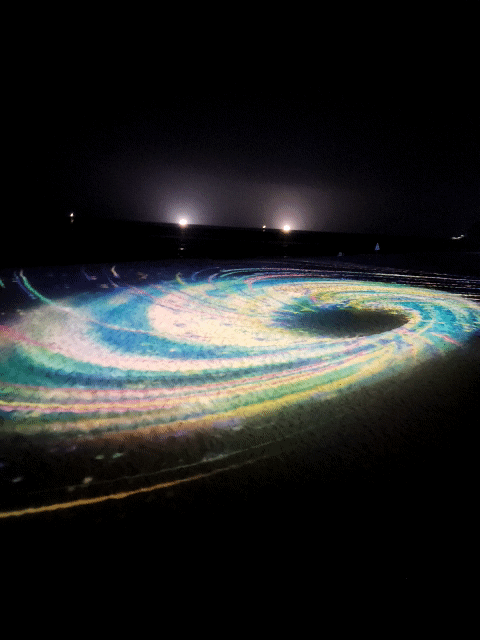 모래사장을 캔버스로 활용한 미디어 아트