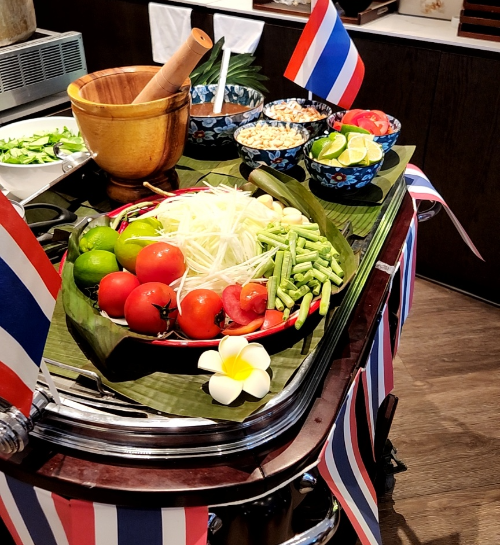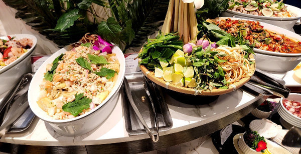라이브 스테이션에서는 초밥, 사시미, 태국 셰프님이 직접 만들어주는 태국식 돼지갈비 누들, 쏨땀 등이 있었다.
