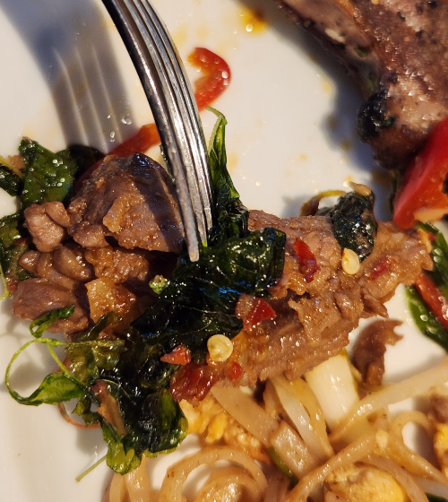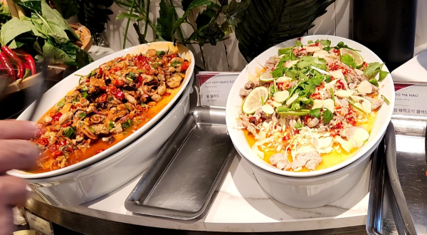 내가 방문했을 때는 태국 음식으로 돼지고기 샐러드, 굴 샐러드, 또 다른 샐러드 2종이 더해져 있었다.