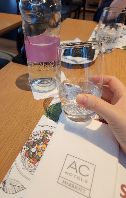 테이블마다 산타니올 탄산수가 놓여 있었는데,