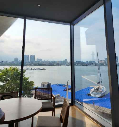 창밖으로 보이는 풍경이 호수와 건물들 조합이라, 다른 바다 뷰 카페들과는 색다른 느낌이었다.