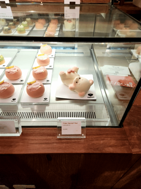 들어서자마자 케이크 진열대가 반기는데,