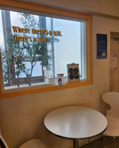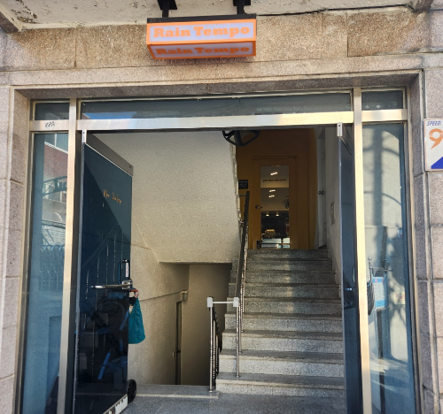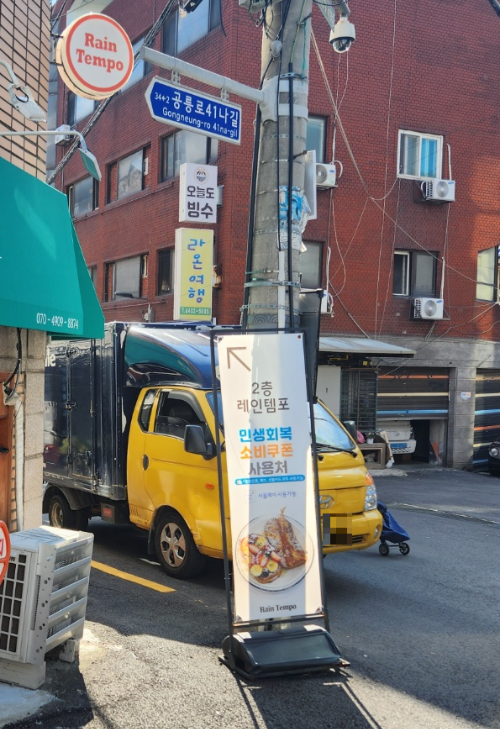 건물에 붙어 있는 간판이 좀 작다... 긴가민가할 때 가판대가 서 있음.