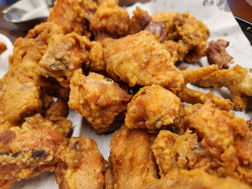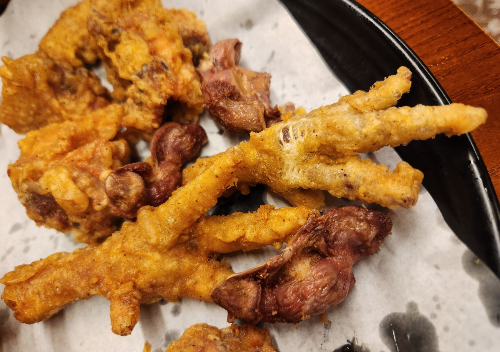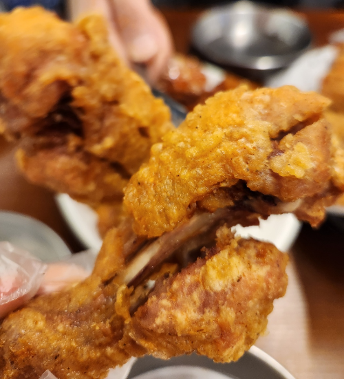 특이하게 부속부위(닭발/닭똥집)이 같이 튀겨서 나온다.