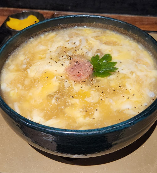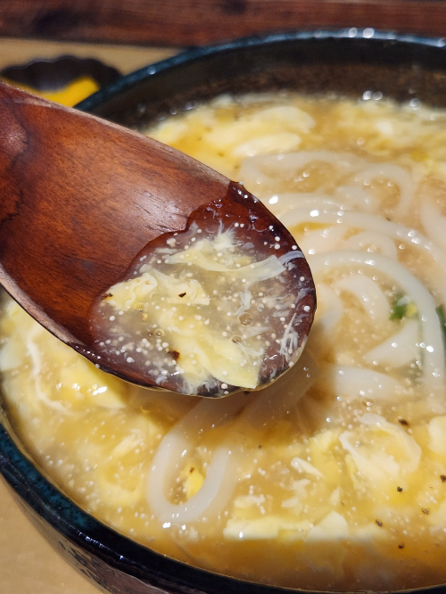 기본 우동의 국물에 전분을 풀어 이런 텍스처를 만들어 낸 듯하다.