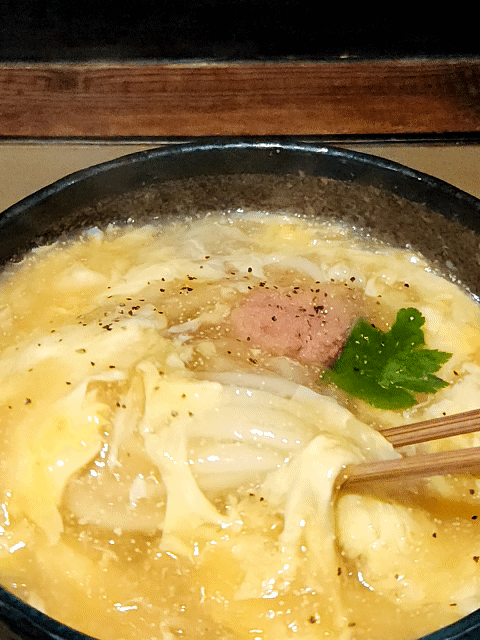 기본 우동의 국물에 전분을 풀어 이런 텍스처를 만들어 낸 듯하다.