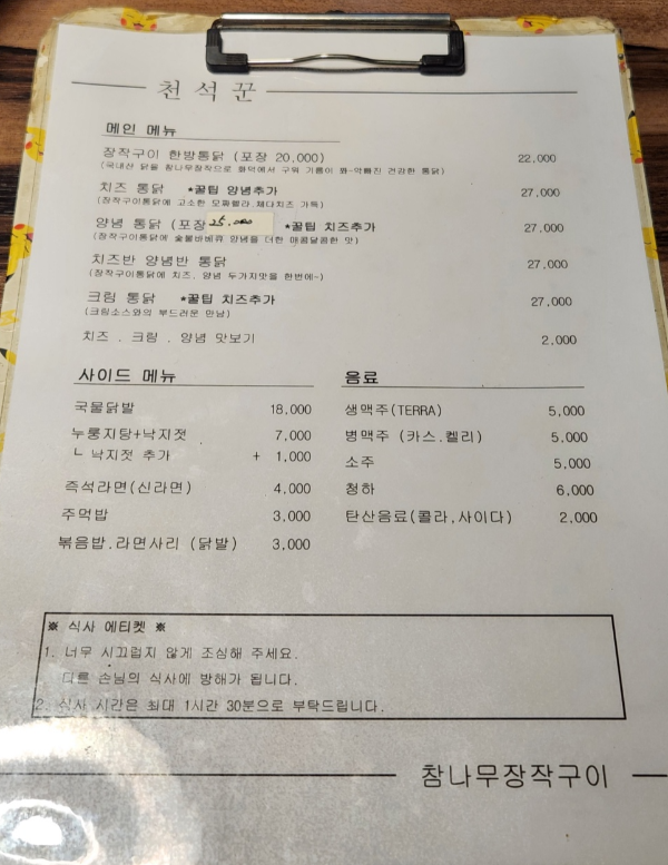 입구에서부터 장작에 통닭이 익어가는 걸 보면 괜시레 기분이 좋아진다.