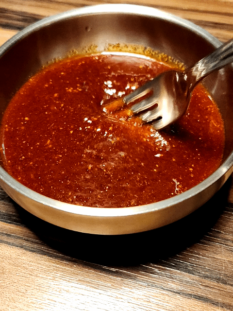 다진 마늘이 낙낙하게 들어간 숙성된 양념 맛.