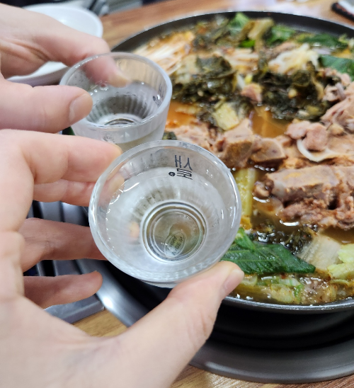 따뜻한 감자탕에는 역시 소주 한 잔