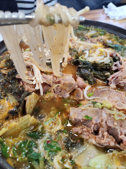 거의 다 먹을 즈음엔 국물 맛이 뼈해장국 맛과 비슷해진다.
