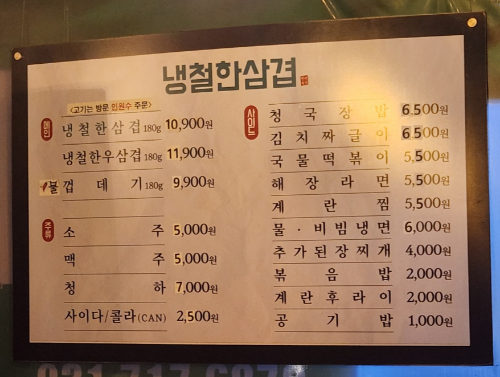 냉삼이 생각날 때 부담 없이 방문하기 좋은 곳.