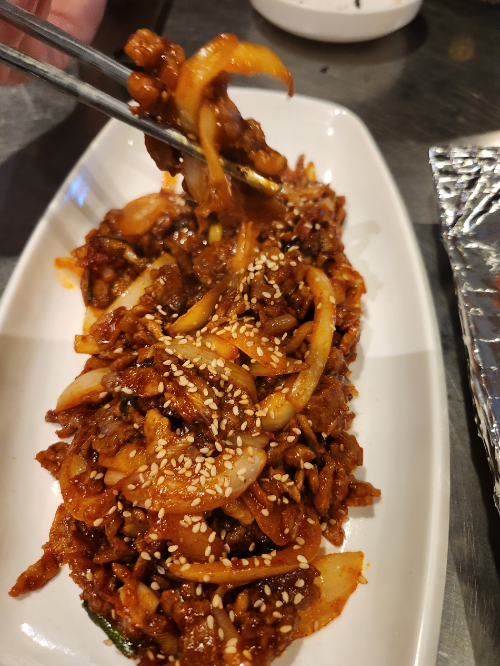 그리고 오돌뼈는 국물이 살짝 있어서 제육 느낌인데,
