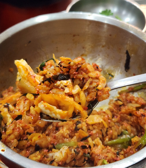 전골 먹다가 중간에 바로 먹어도 좋다.