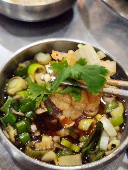 대파김치랑 먹어도 맛있고, 소스에 살짝 + 고수랑 함께 먹어도 좋다