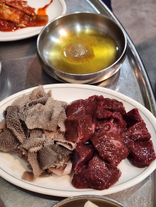 구이를 시켰을 때처럼 간이랑 천엽을 기본으로 챙겨주신다.