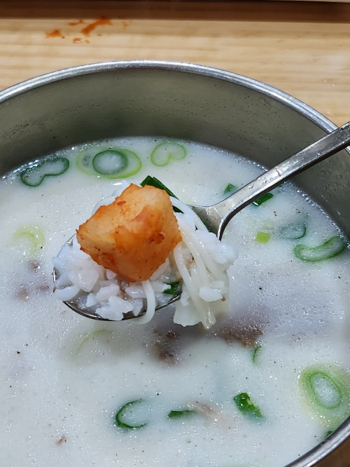 궁물에 밥 말아서 깍두기 먹는 게 정말 최고였다.