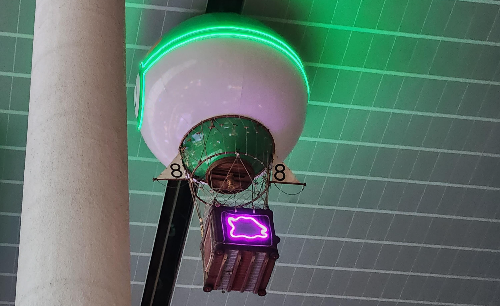 열기구는 포켓볼 모양으로 떠 있고,