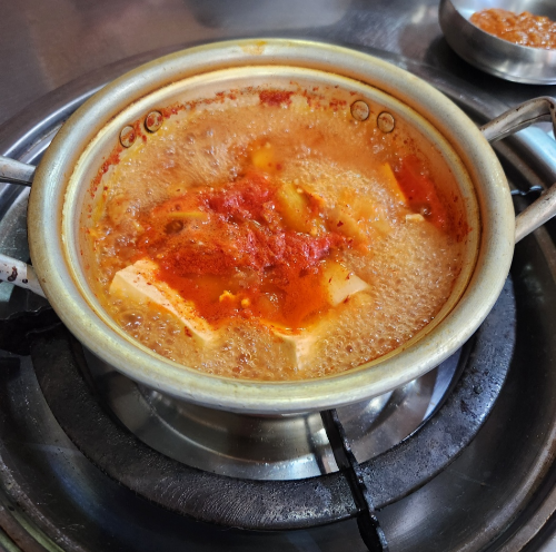 곱창이 나오기전에 간단한 김치찌개가 보글보글.