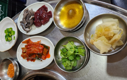 간이랑 천엽, 기본 반찬도 야무지게 나옵니다.