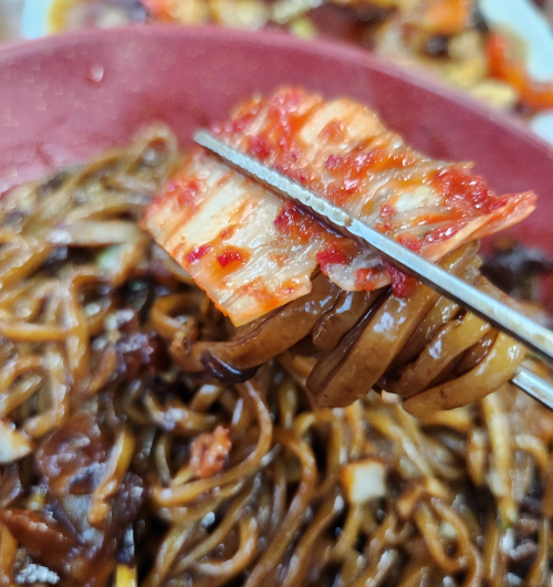 짜장과 면이 따로 나오는 타입이라 촤라락 부어 잘 섞어주면.