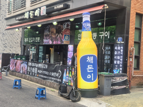 제주 흑돼지를 파는 곳 답게 한라산 소주 도 보입니다