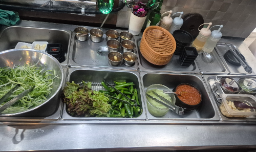 셀프바에서 상추, 마늘, 파채, 소스 등 마음껏 리필 가능!