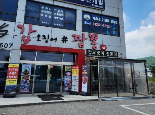 그때! 차 타고 10분 정도 달리면 도착하는 곳—바로 ‘갑오징어짬뽕’ 전문점입니다.