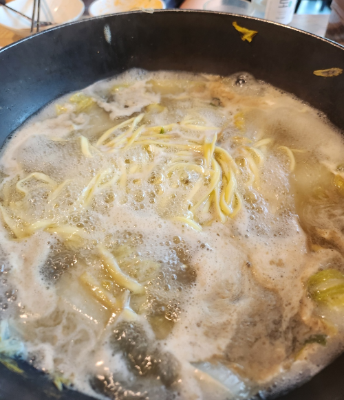 건더기 다 클리어하고, 벨 누르자마자 등장한 칼국수.