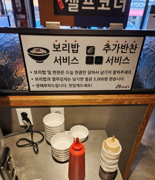 메뉴 주문 후에 발견한 셀프 보리밥 코너.