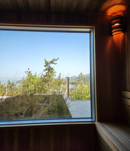 높은 건물은 아니지만, 바다를 향해 설계된 구조라 어느 방에서든 탁 트인 풍경을 감상할 수 있어요.