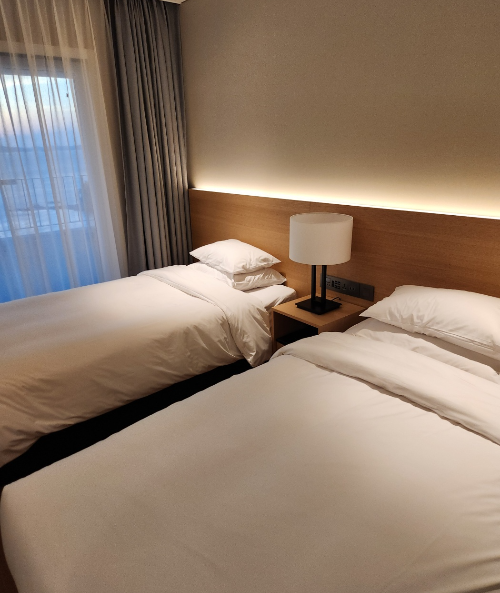 제가 묵은 방은 트윈룸이었는데, 베드는 정말로 싱글 사이즈예요.