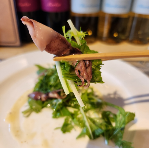 곧이어 등장한 샐러드는 작은 오징어가 올려진 샐러드.