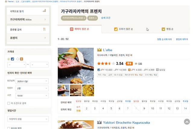 - 타베로그 외 다른 예약 수단이 없는 레스토랑