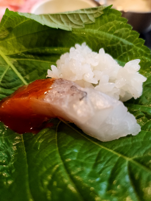 그날의 최애는 셰비체 소스에 듬뿍 찍어서 깻잎이랑 냠.
