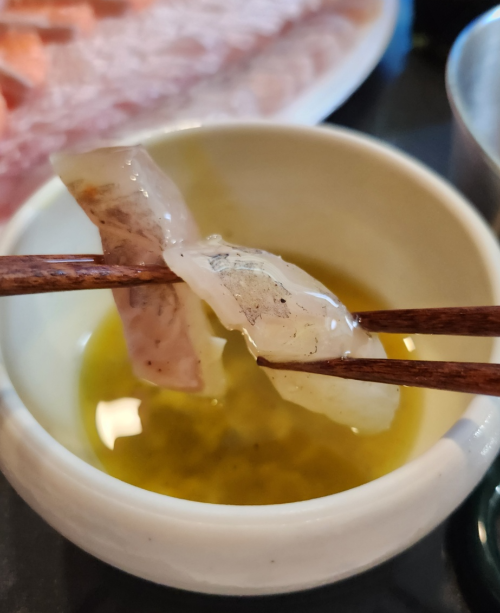 그날의 최애는 셰비체 소스에 듬뿍 찍어서 깻잎이랑 냠.